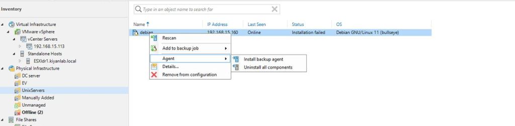 If for any reason you are not able to push the agent from VBR to your Linux server, you can install the agent manually in the Linux server. I will explain this procedure in my next post