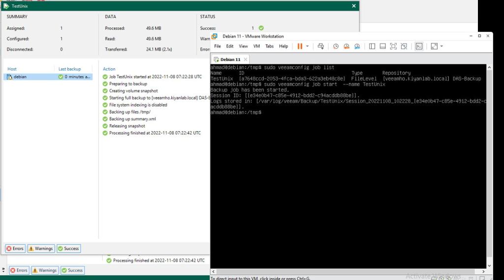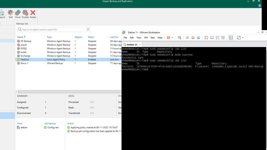 If we get back to client console, we need to confirm the backup job which we just created is visible in there, using the below command: