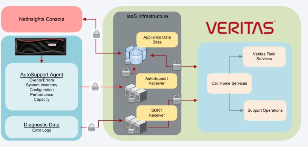 Enabling Call Home provides a one-way communication that only transmits data and does not allow the appliance to receive any incoming data or notifications. All data that is transmitted to Veritas from an appliance is done with TLS-encrypted transmission by HTTPS PUT over port 443/tcp