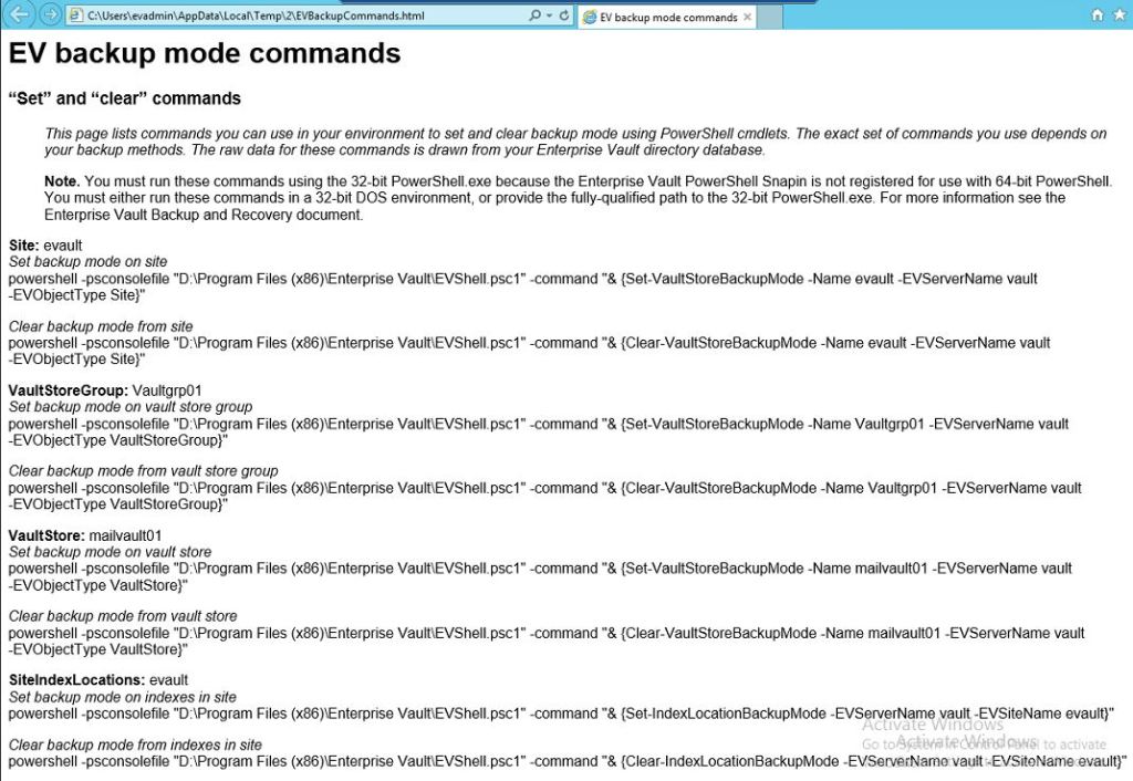 By running the powershell script, you will be provided an HTML output which does show all commands you need to create your script for putting (SET) the EV in backup mode and taking (CLEAR) the EV out of backup mode.
