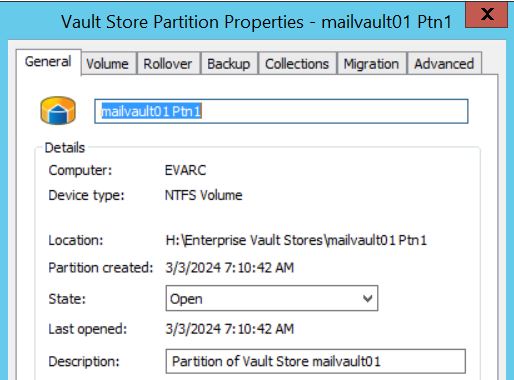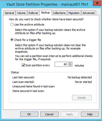 Now before I continue, let us take a look at the properties of one of the vault store partition and access the backup tab specifically.