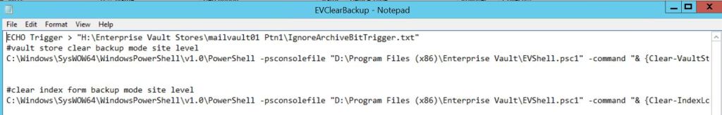To prepare the needed scrips, I will create two Scripts, one to set the EV in backup mode (EVSetBackup.bat)