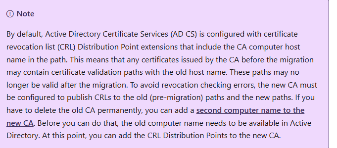 since we are doing the migration of CA and changing the name, I like to share note from Microsoft article