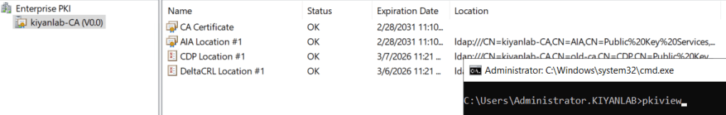 now ,open cmd, and run “pkiview”,export the configuration of enterprise PKI, this might come handy if needed in the new host.