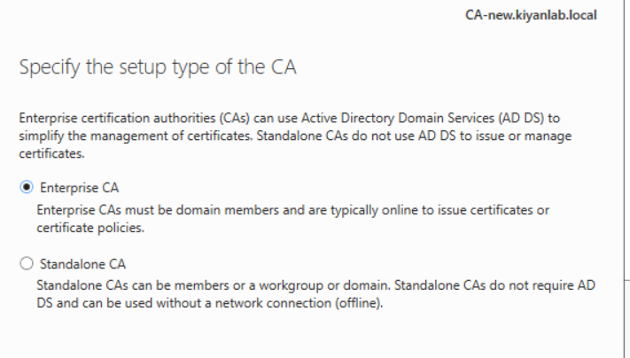 choose enterprise CA from the options and click next