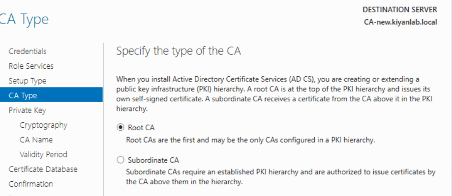choose root CA and click next