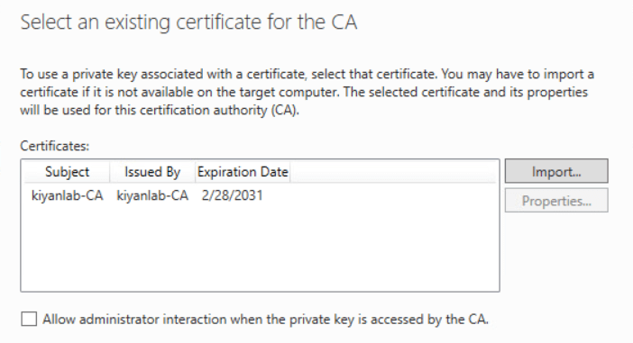 In my LAB I have one root CA and I do not have any subordinate CA.