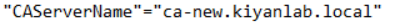 open the registry file which was exported from old CA in your desired notepad and look for “CAServerName” make sure the name in front of it matches the new CA hostname