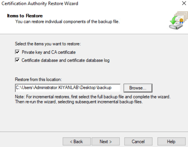 now we have to restore the CA.