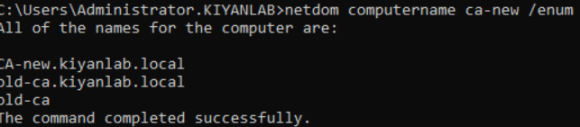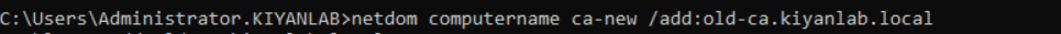 to ensure this change does not impact the issued certificate , we will add the old CA hostname as a secondary name. open a command line and enter below command to add the hostname of the old CA to new CA as a secondary hostname